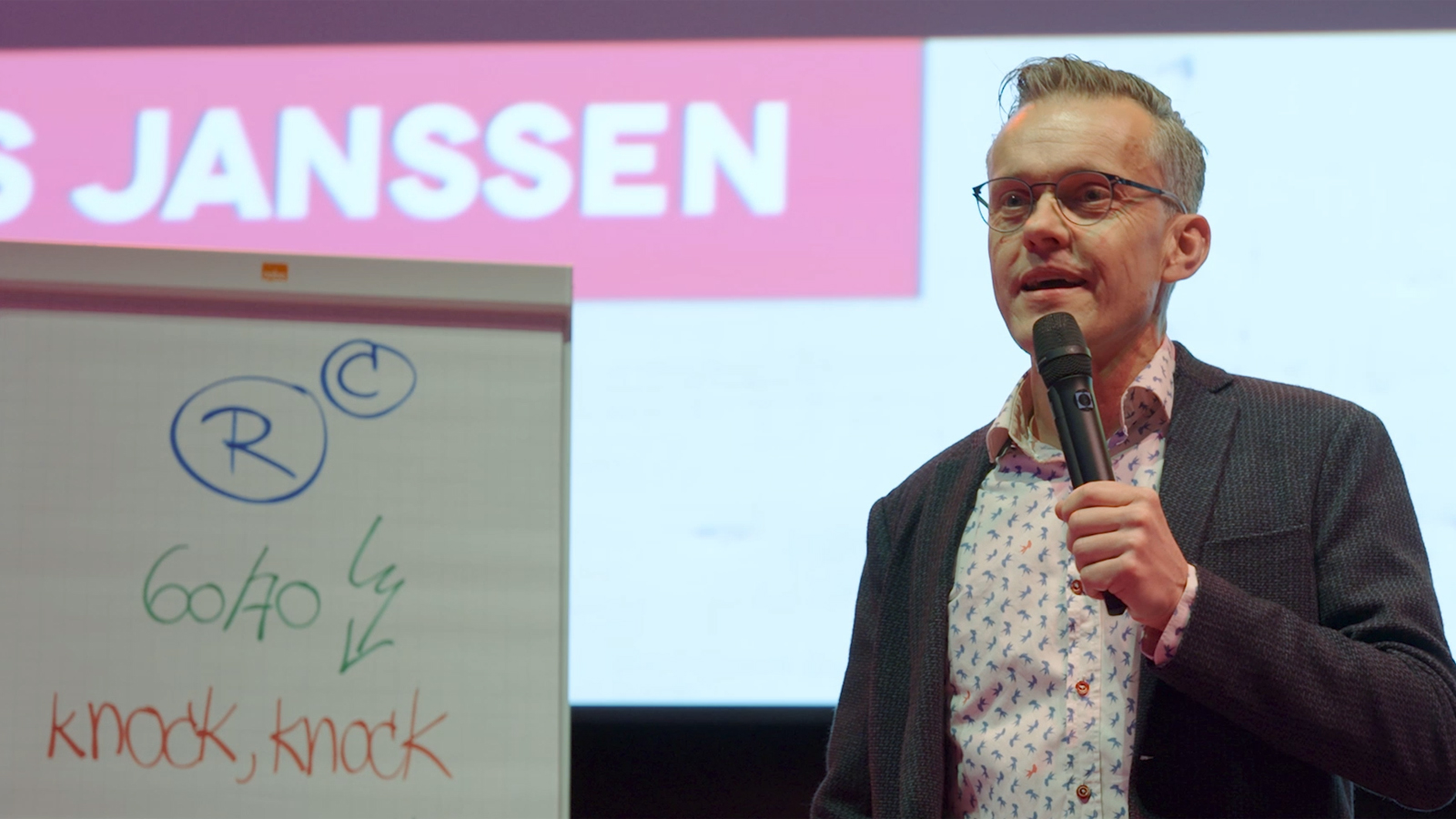 In 2015 nog balanceerde zijn bedrijf op de rand van de afgrond. Janssen was enkele jaren daarvoor volledig eigenaar geworden van DenkProducties en voelde zich als een jonge god die voor het eerst op kamers ging, zoals hij het zelf verwoordt. ‘Ik liep te hard van stapel en wilde alles tegelijk. En e-modules, én avondcolleges, én dit, én dat. Het liep bijna verkeerd af. Toen heb ik geleerd om te focussen. Om keuzes te maken en datgene dát je doet, heel goed te doen. Ik koos ervoor spraakmakende, tegendraadse seminars te organiseren voor leiders met de allerbeste sprekers. Dat was de niche waar ik me op ging richten. Ook heb ik me toen één ding voorgenomen: “Het gebeurt me nooit meer dat ik me zorgen moet maken of ik mijn leveranciers nog kan betalen.” En dus heb ik vanaf dat moment geld opzijgelegd. Dat was een belangrijke les van die moeilijke periode in 2015.’