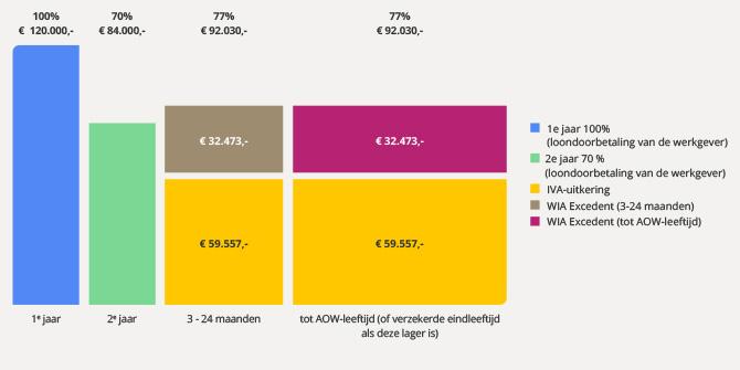 Jouw medewerker ontvangt een vergoeding tot zijn AOW-leeftijd of tot de AOW-leeftijd, gemaximeerd op een vaste eindleeftijd (bijvoorbeeld 68 jaar) .